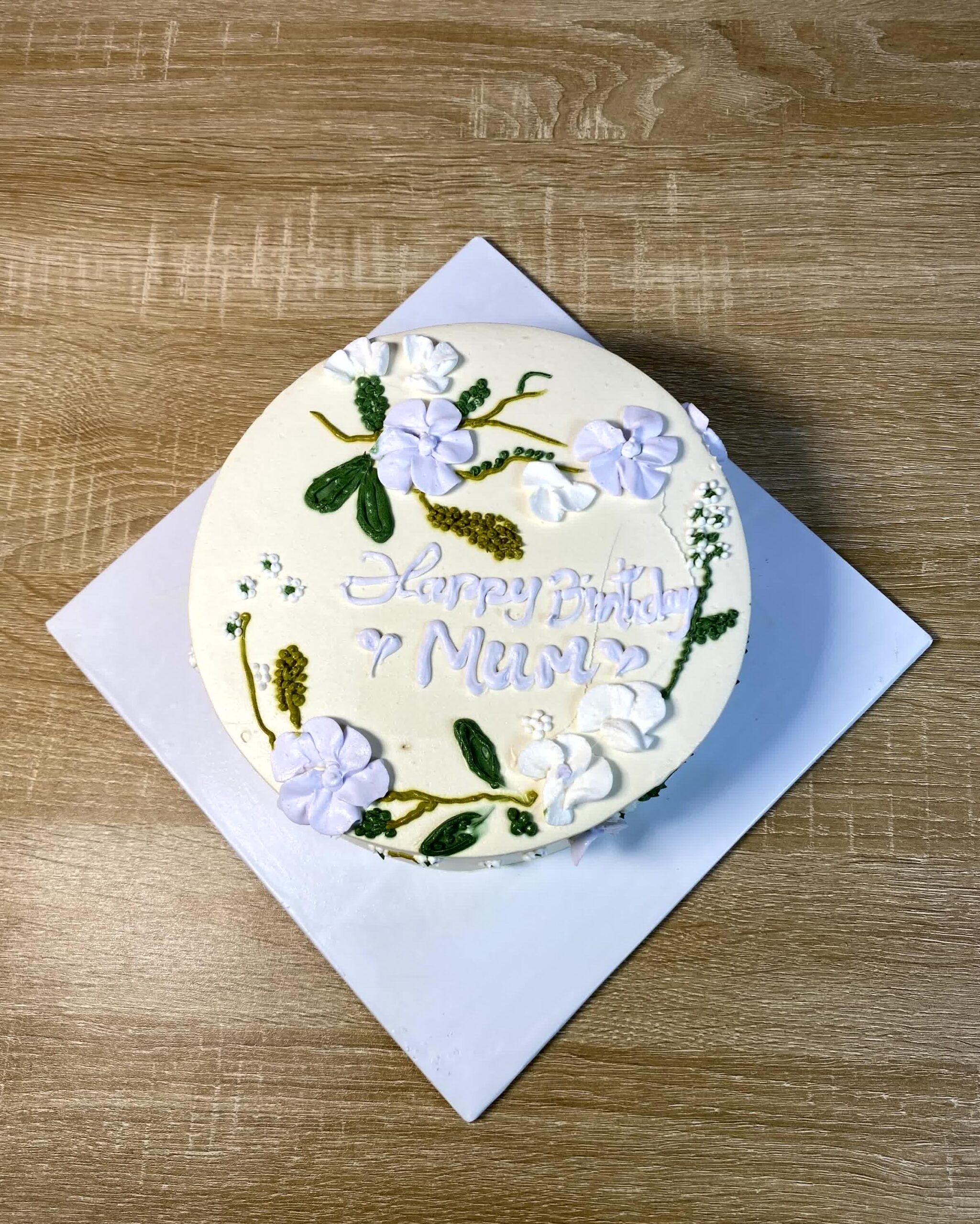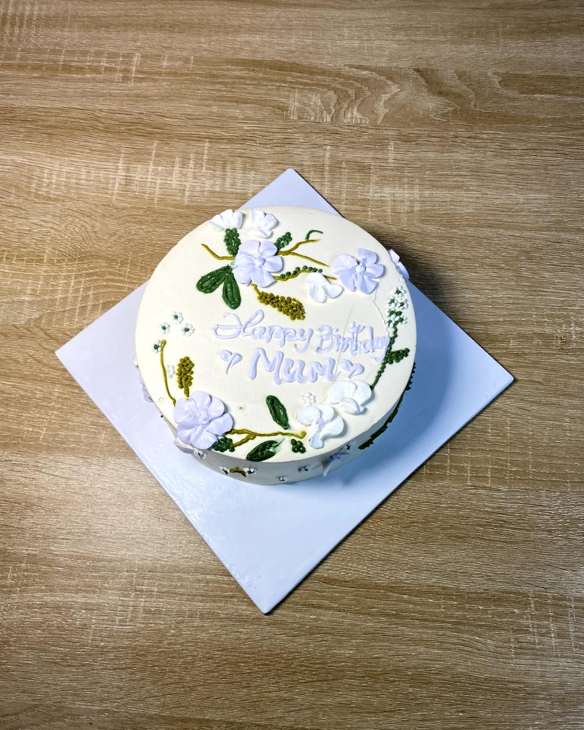 Need a beautiful cake fast? Our Draw Me Flower Express Cake is the perfect solution for last-minute celebrations! This classic single-tier cake is finished with a smooth, neutral buttercream and hand-piped with charming, simple floral accents and green foliage. Its clean, elegant design and sweet, natural look make it suitable for any occasion—from small birthdays to thoughtful thank-you gifts. Order today and enjoy high-quality design without the wait!