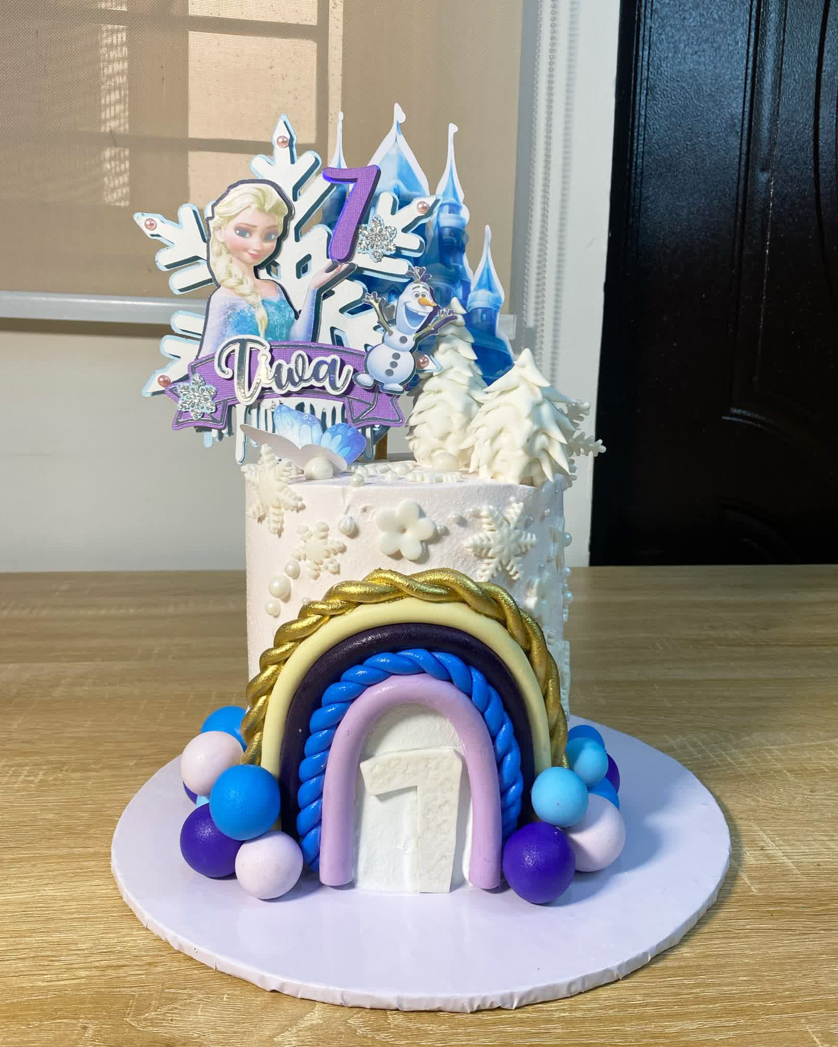 Let your little one’s dreams come true with this magical Frozen Character Theme Cake! This enchanting design captures the winter wonderland of Arendelle, featuring a decorative castle, sculpted snowflakes, a colourful rainbow arch, and a themed character topper (Elsa, Anna, or Olaf). It’s the perfect, personalized centerpiece for any child’s birthday celebration. Handcrafted with love from The Baking Barn NG, Lekki.