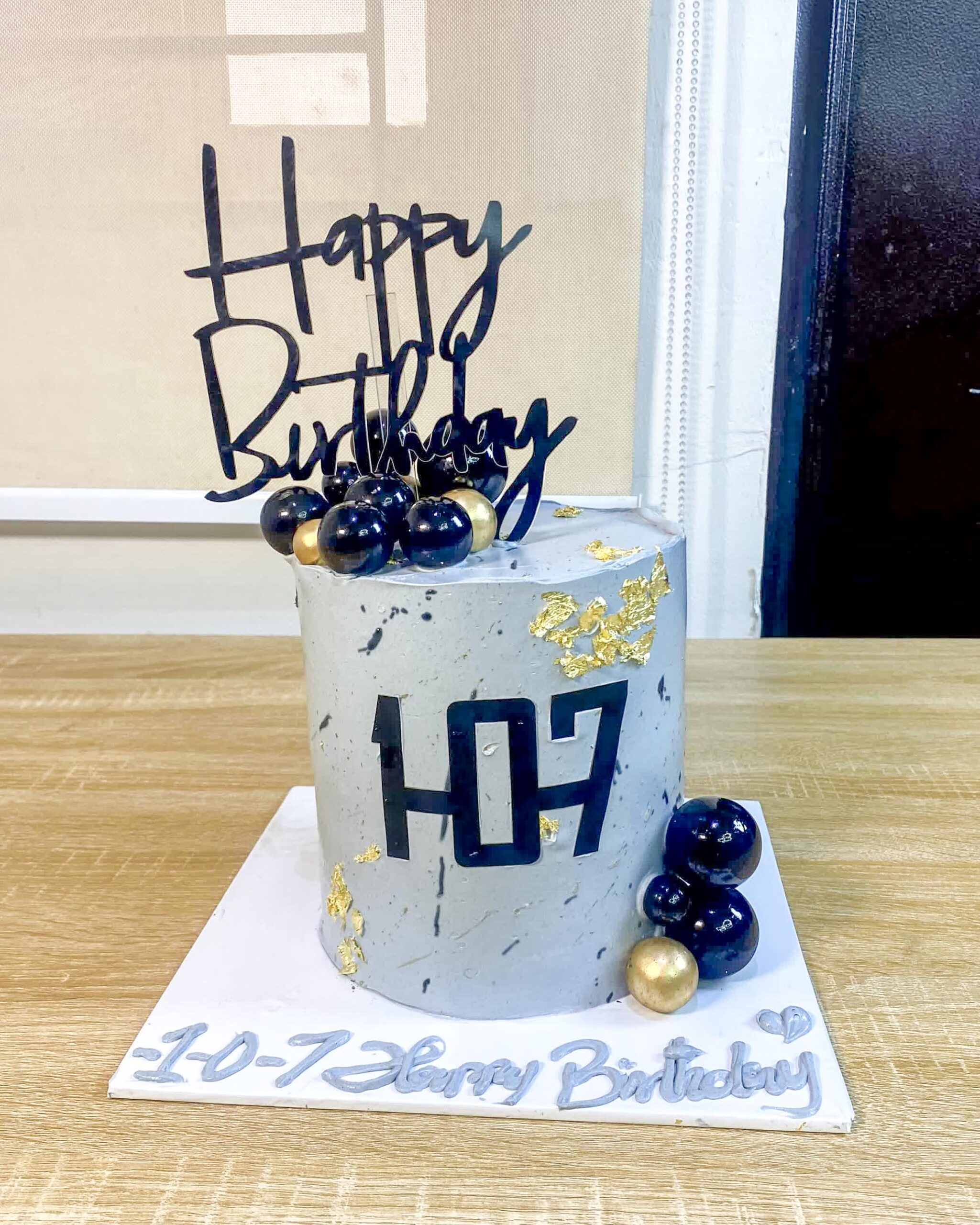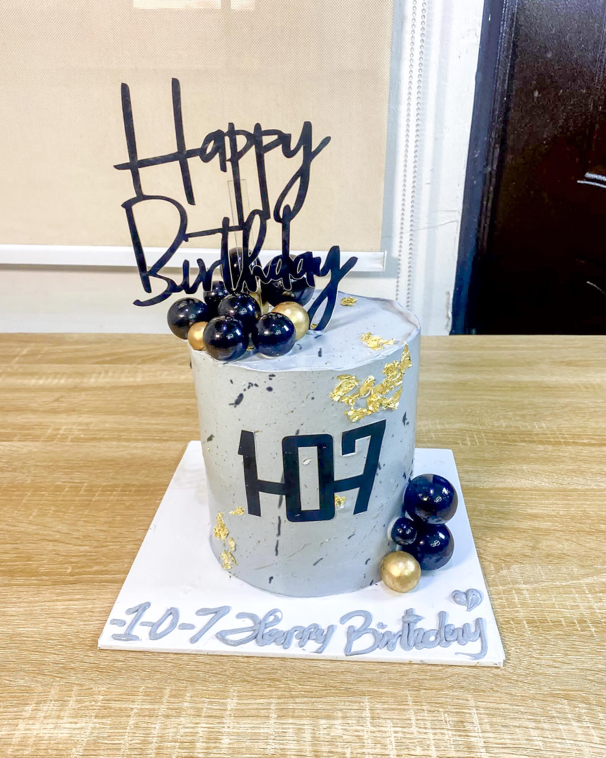 Embrace sophisticated simplicity with our Grey Minimalist Birthday Cake. This contemporary design features a subtle, textured grey finish, contrasted sharply with dramatic black spheres and elegant gold leaf accents. It’s the ideal centerpiece for stylish adult birthdays, anniversaries, or any event requiring a modern, understated aesthetic. If you love clean lines and chic design, this cake is for you. Handcrafted for the modern celebration from The Baking Barn NG, Lekki.