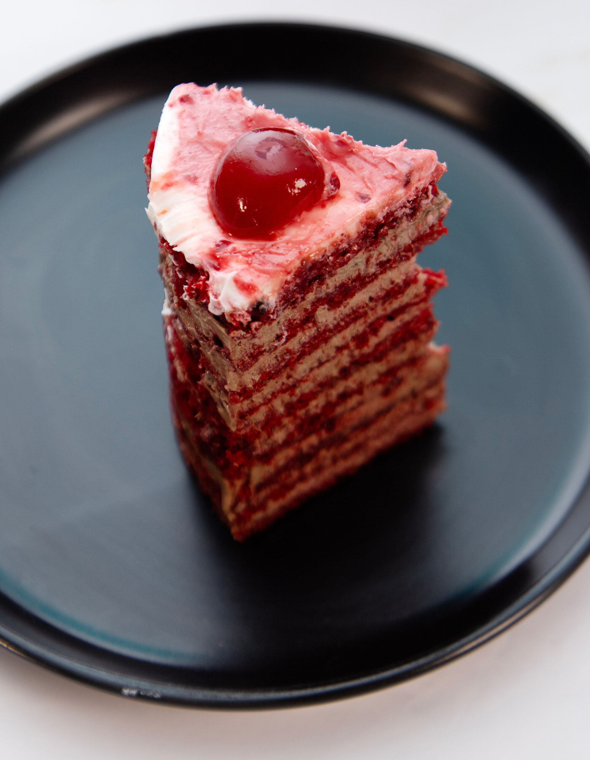 Experience the perfect fusion of flavors with our Red Velvet Choco slice from The Baking Barn NG, Lekki. This visually stunning, multi-layered treat brings together the velvety smoothness of classic red velvet and the deep, indulgent richness of premium chocolate. Each bite is a decadent balance of moist sponge and our signature silky frosting, crafted to satisfy the most sophisticated sweet tooth.